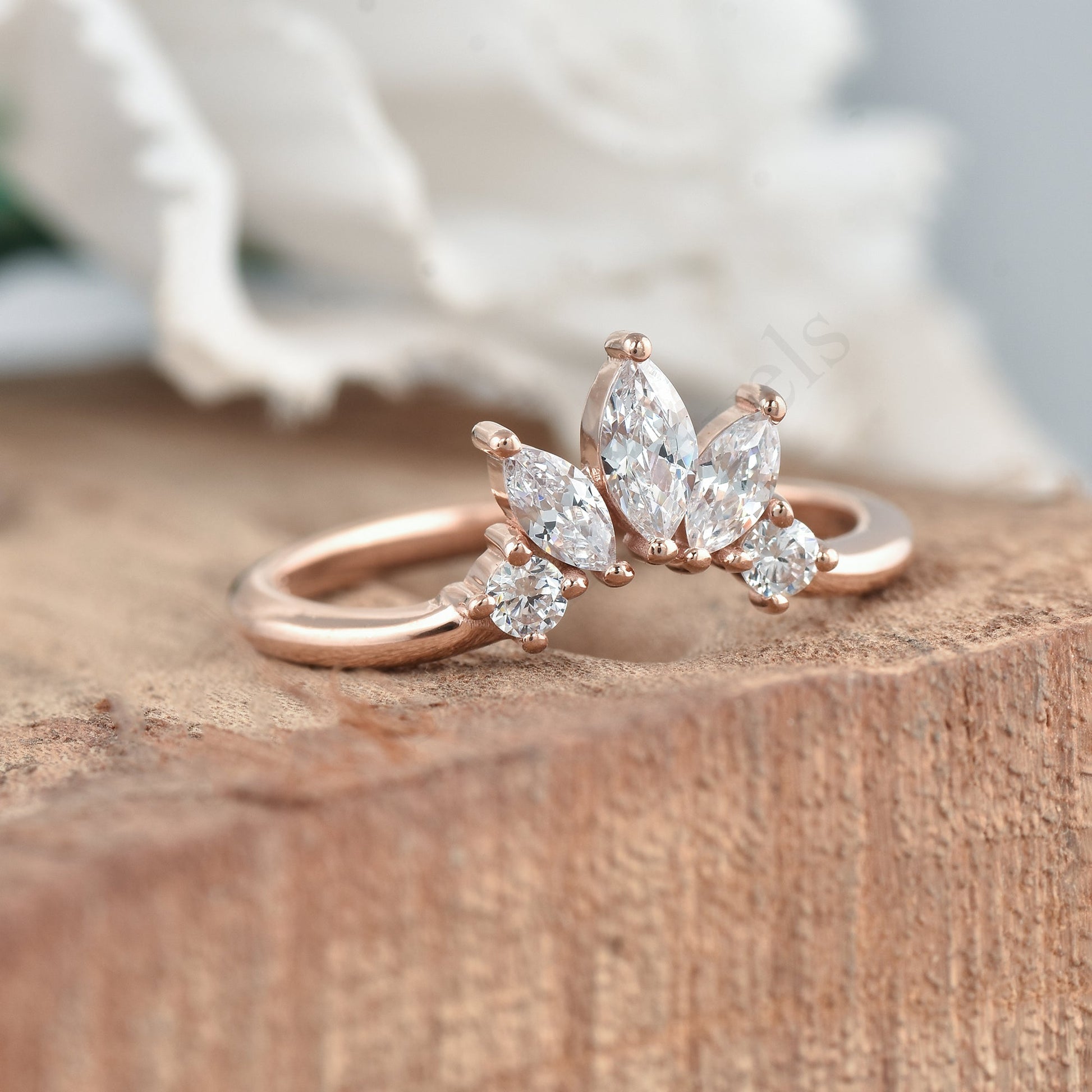 Curved Engagement Ring, Art deco Matching Band ,Curved Wedding Band Rings ,Marquise Cut Gold plated ring Anniversary promise Ring Stack Ring