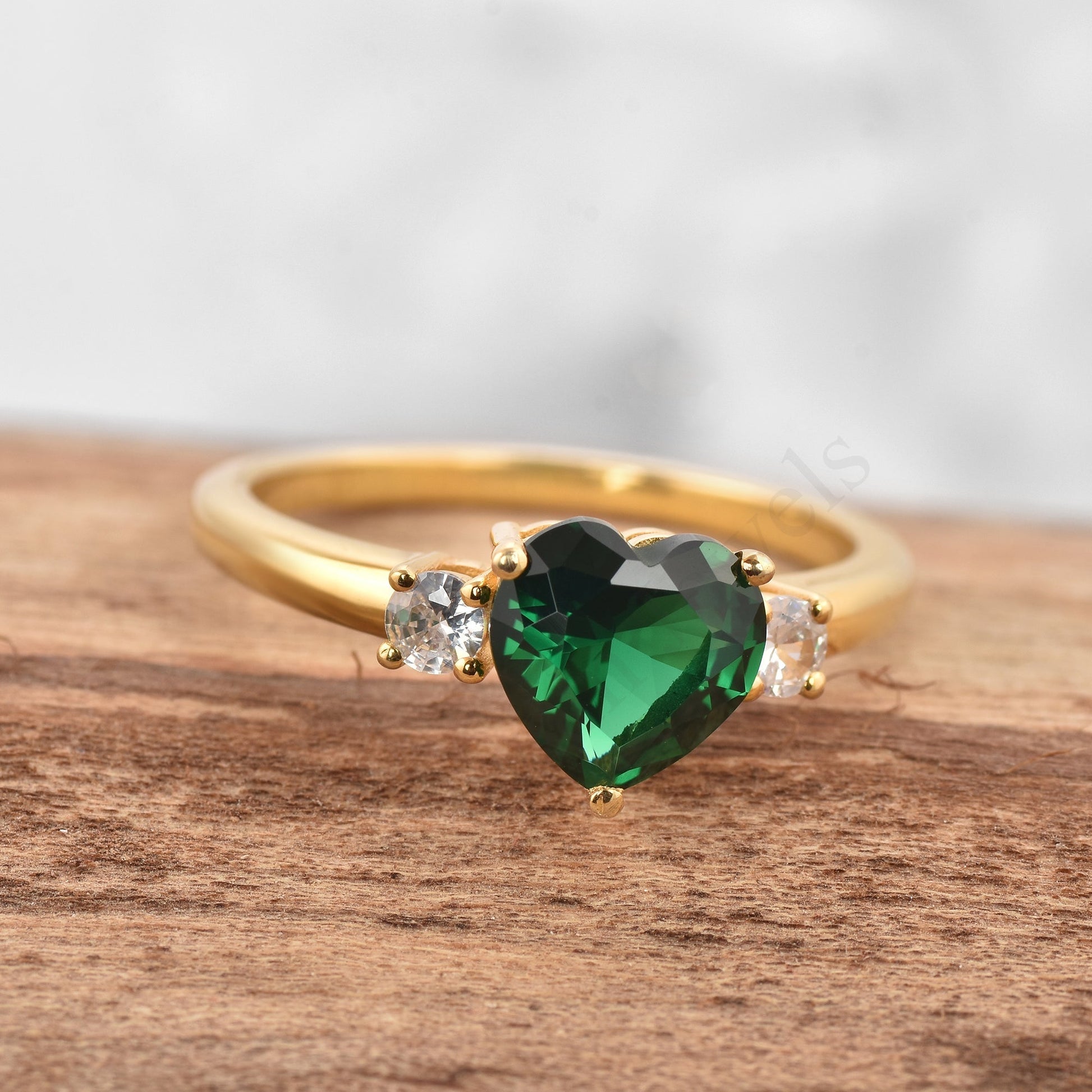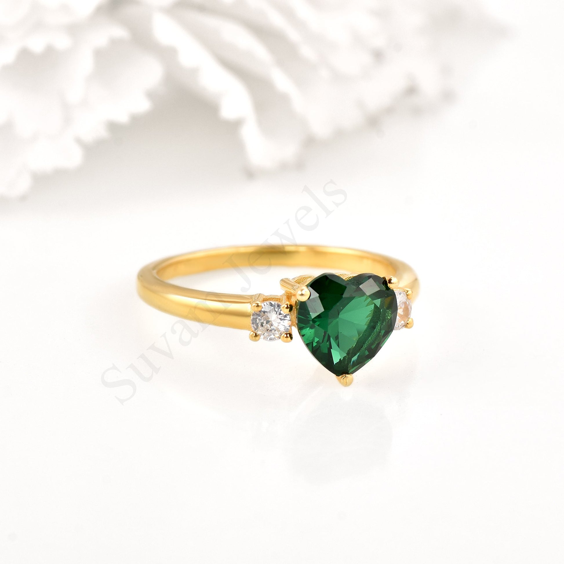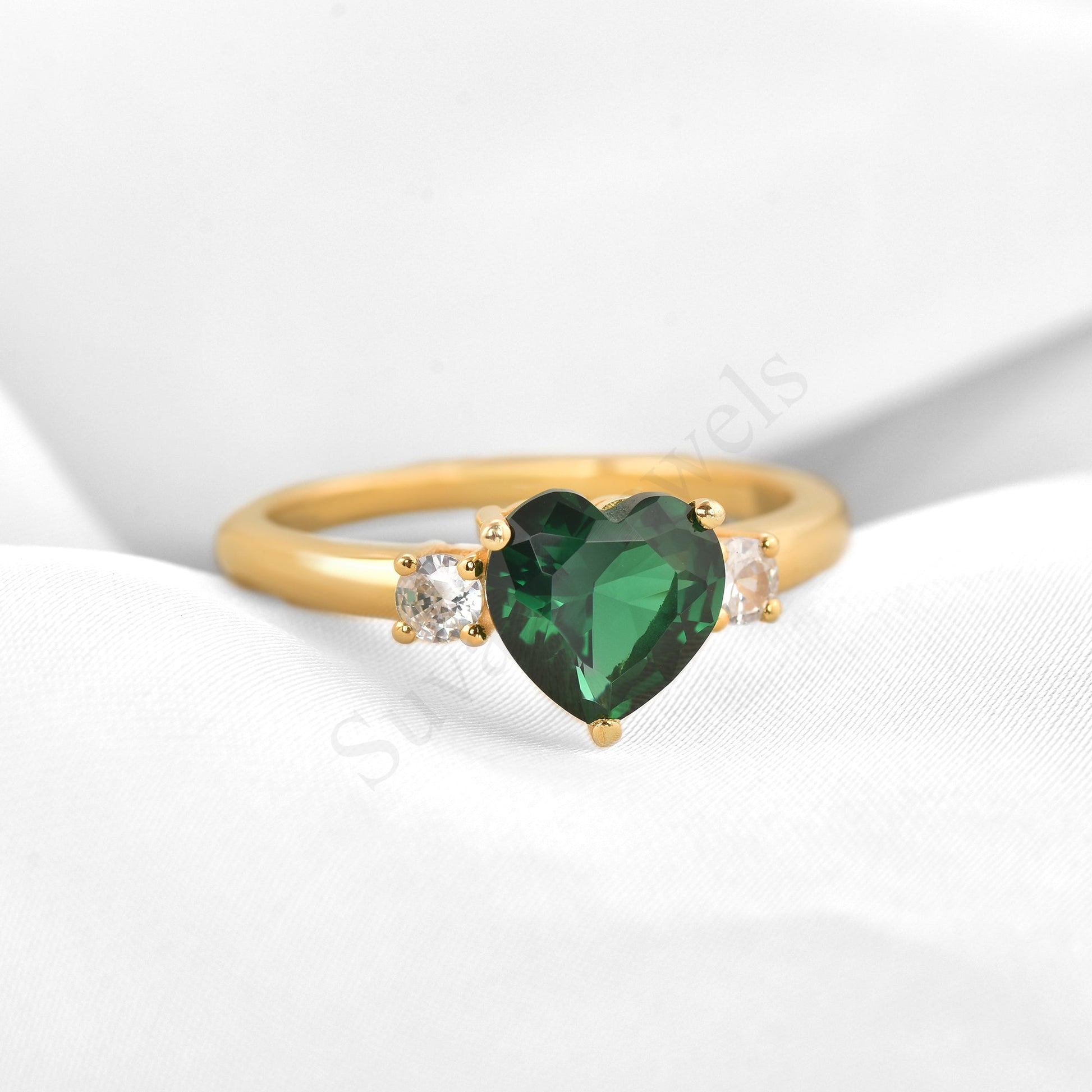 7MM Emerald Heart Ring ,Sterling Silver Heart shape Ring, handmade Simple heart Band Ring , Promises Gift Ring ,Best Girls and women