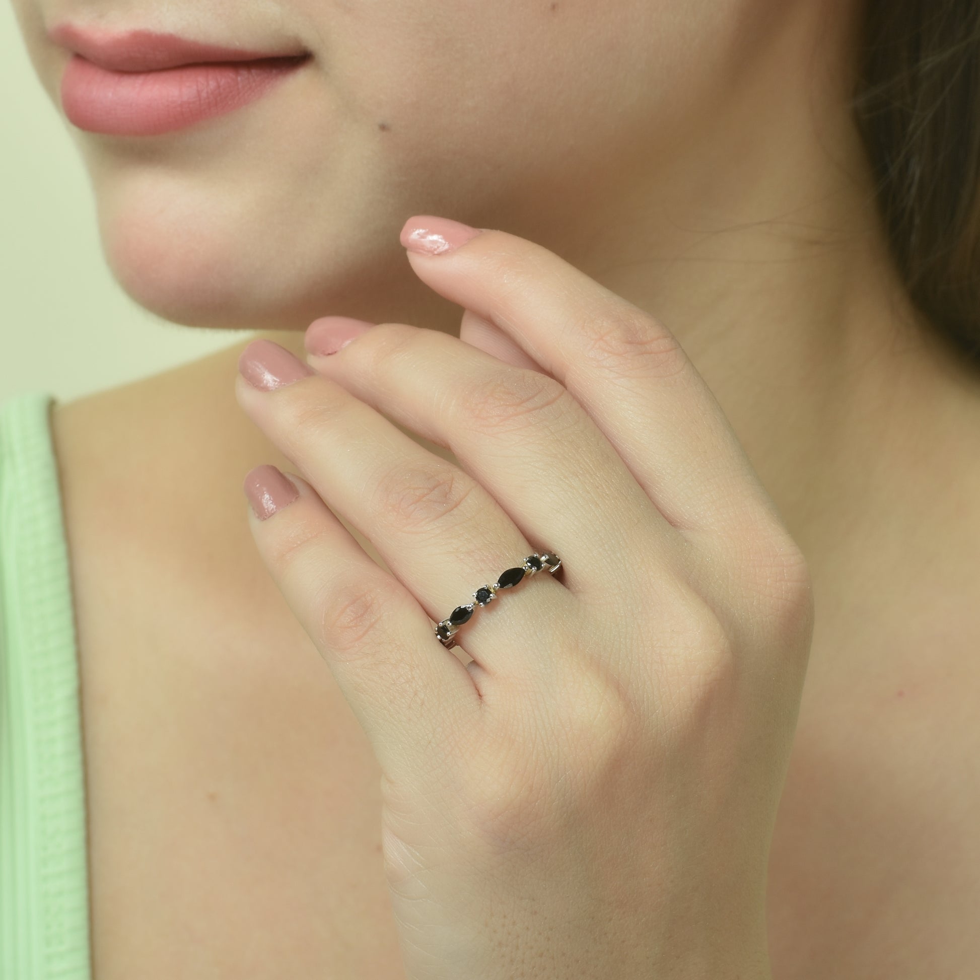 Full Eternity Black Onyx Wedding Band, Sterling Silver Wedding Band Marquise Ring, Matching Stacking Ring , Band Gift For Women