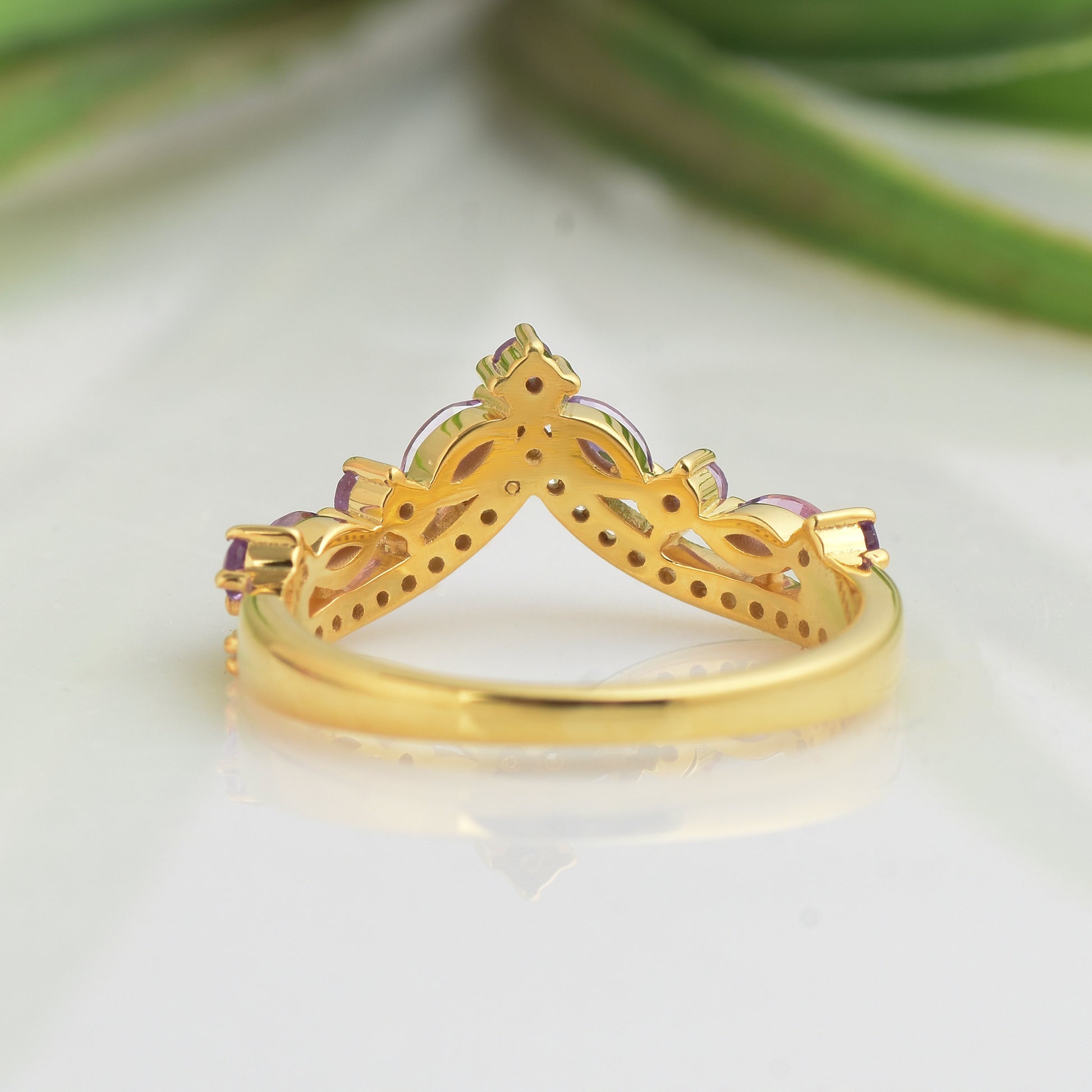 Natural Amethyst Curved Engagement ring