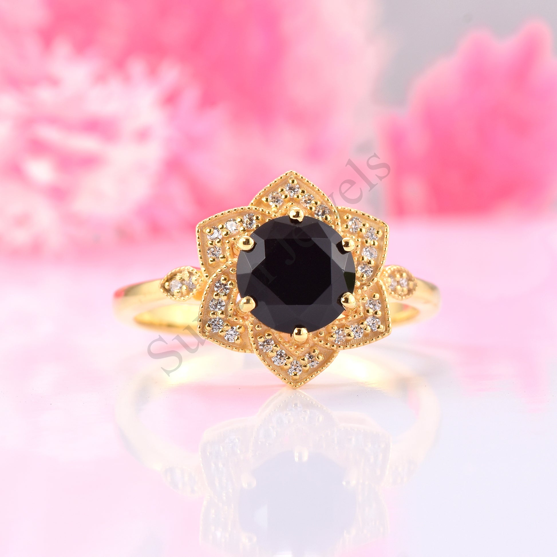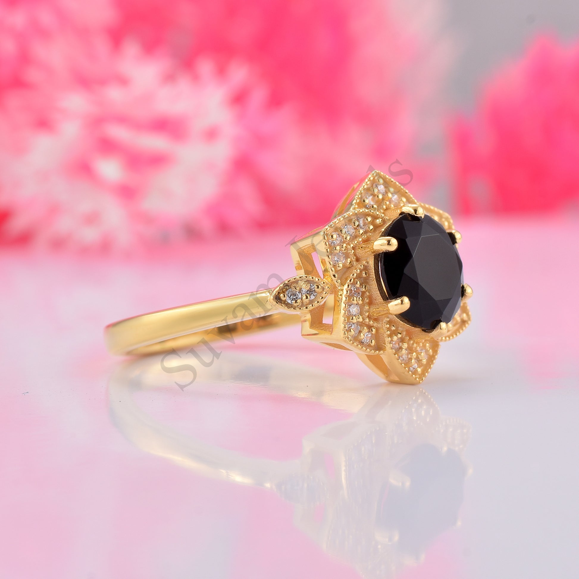 Vintage Black onyx Engagenent Ring Sterling Silver Round Cut Art Deco Promise Ring Round Gems Statement Ring Anniversary Ring Gift For Her